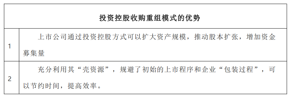 上市公司对被并购公司进行投资,从而将其改组为上市公司子公司的并购行为。这种以现金和资产入股的形式进行相对控股或绝对控股,可以实现以少量资本控制其他企业并为我所有的目的。